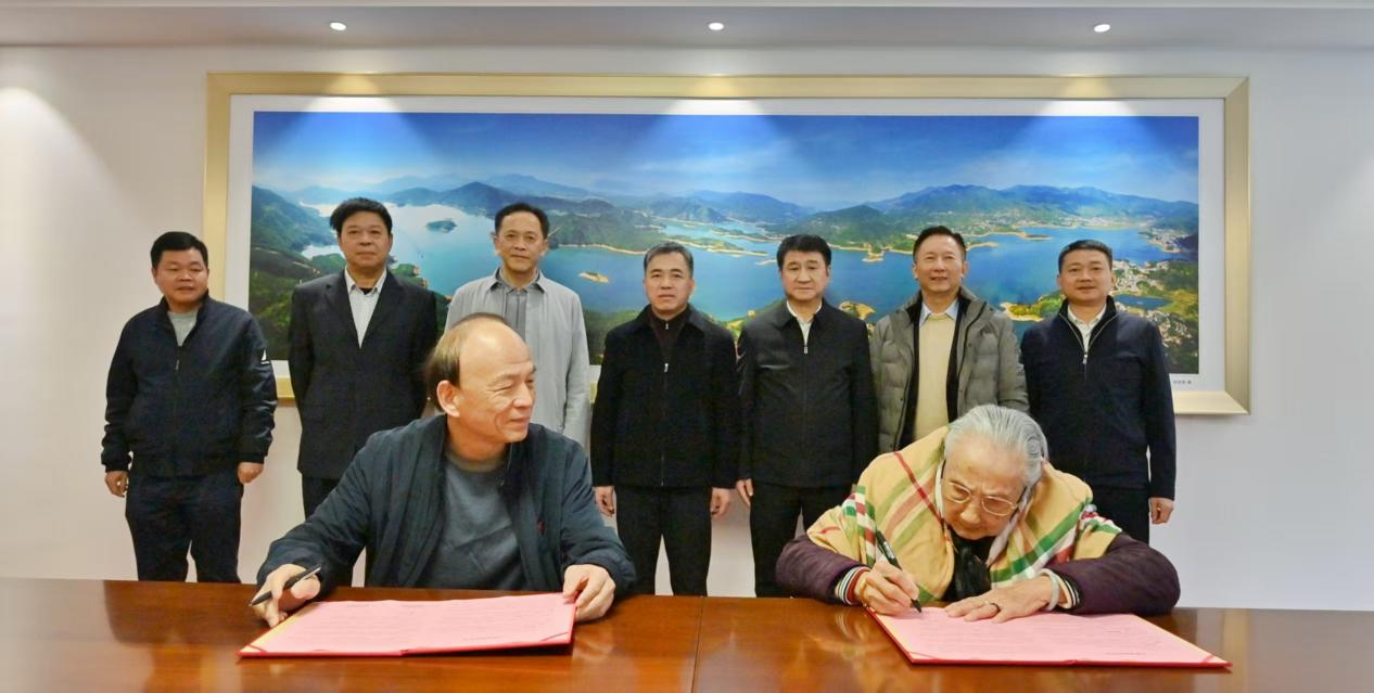 2024年,陈清州捐赠善款,其94岁高龄的母亲李彩恋(前右)与南安市慈善总会常务副会长黄永俊(前左)签约,市委书记张桂森(后中)等出席。